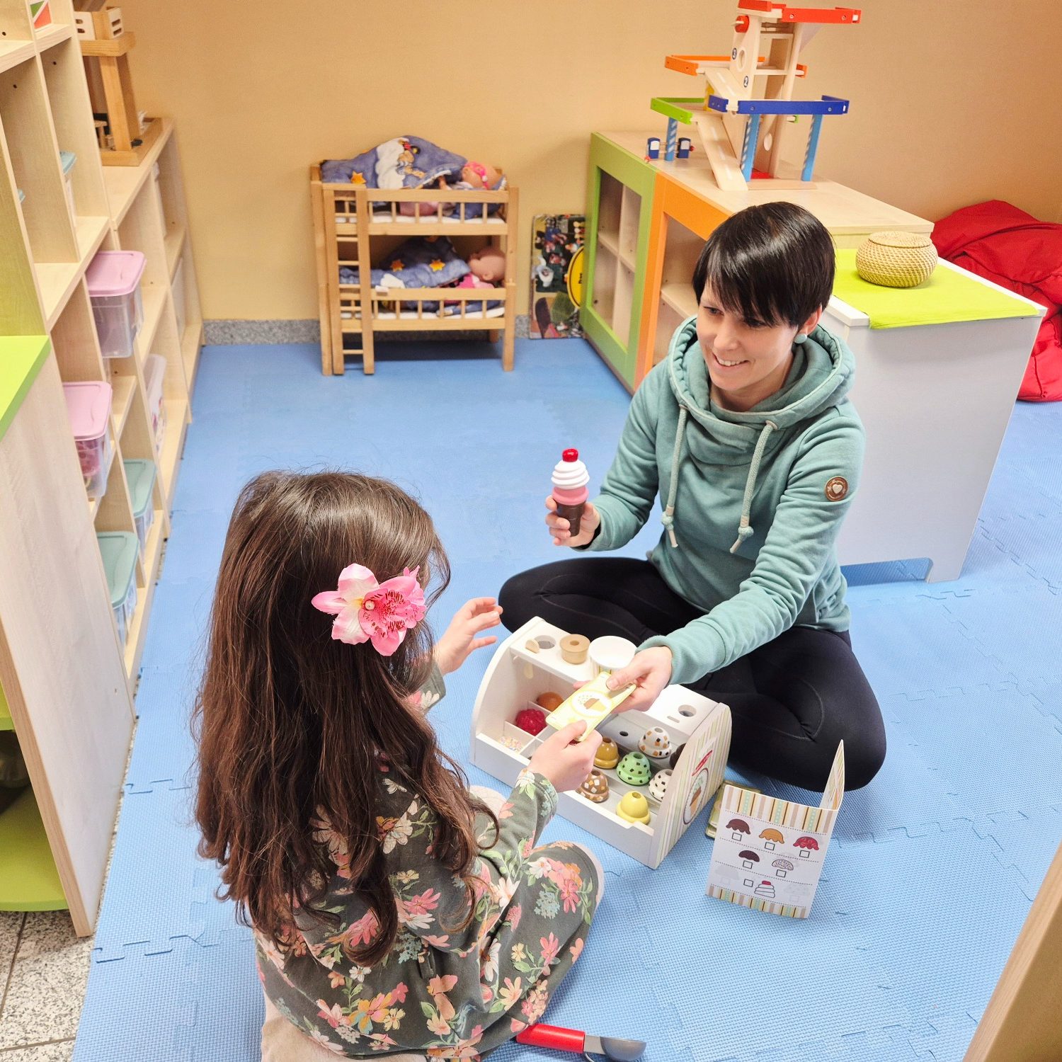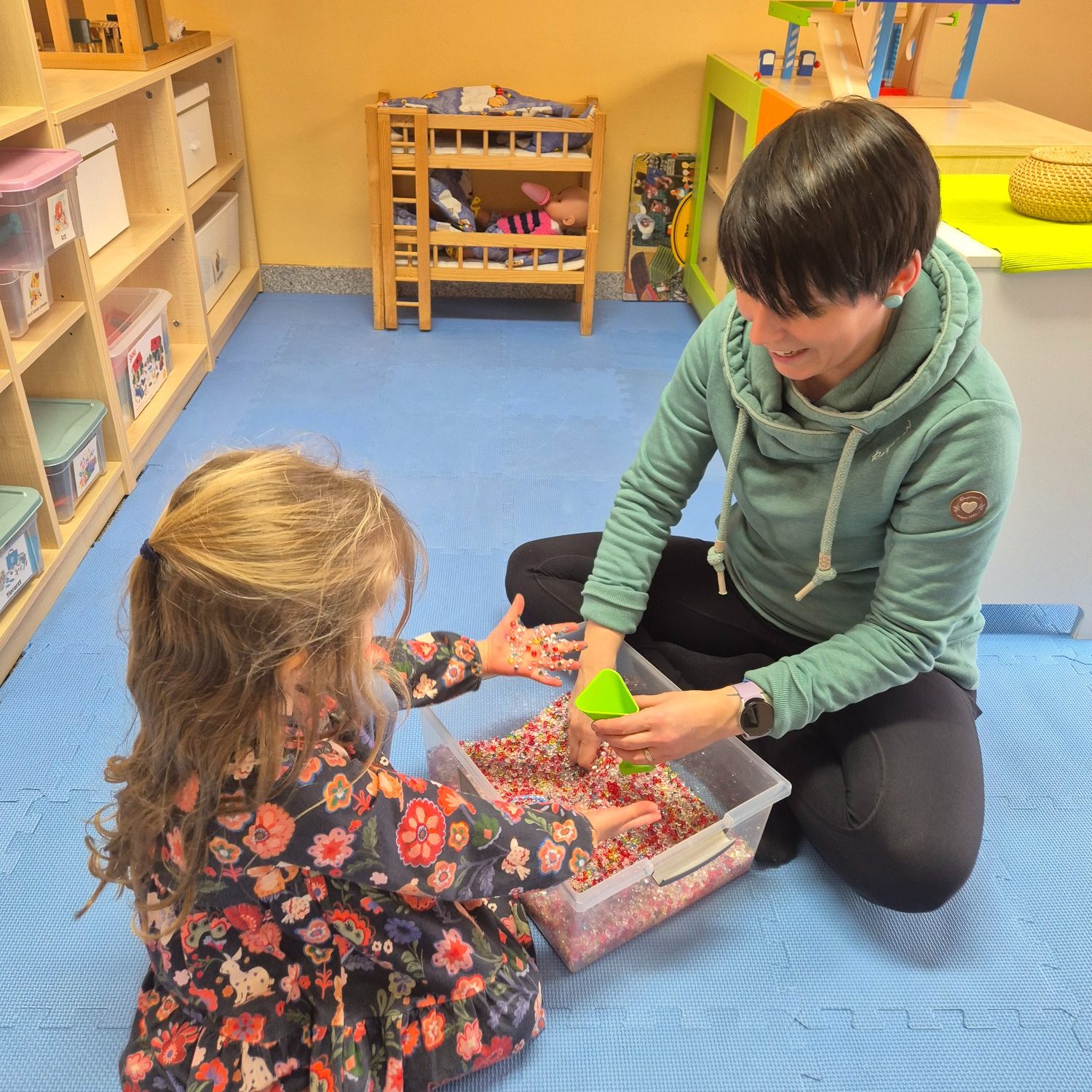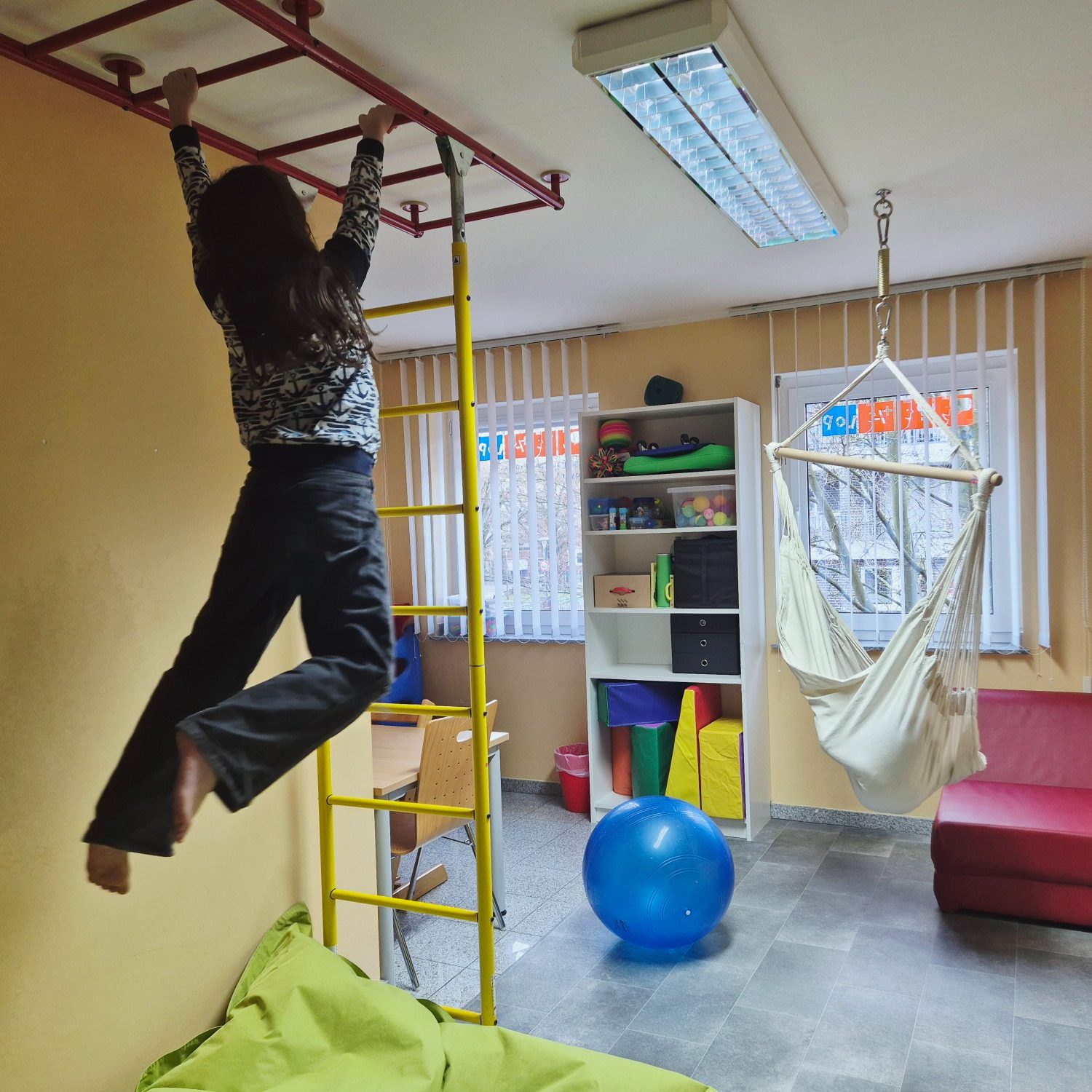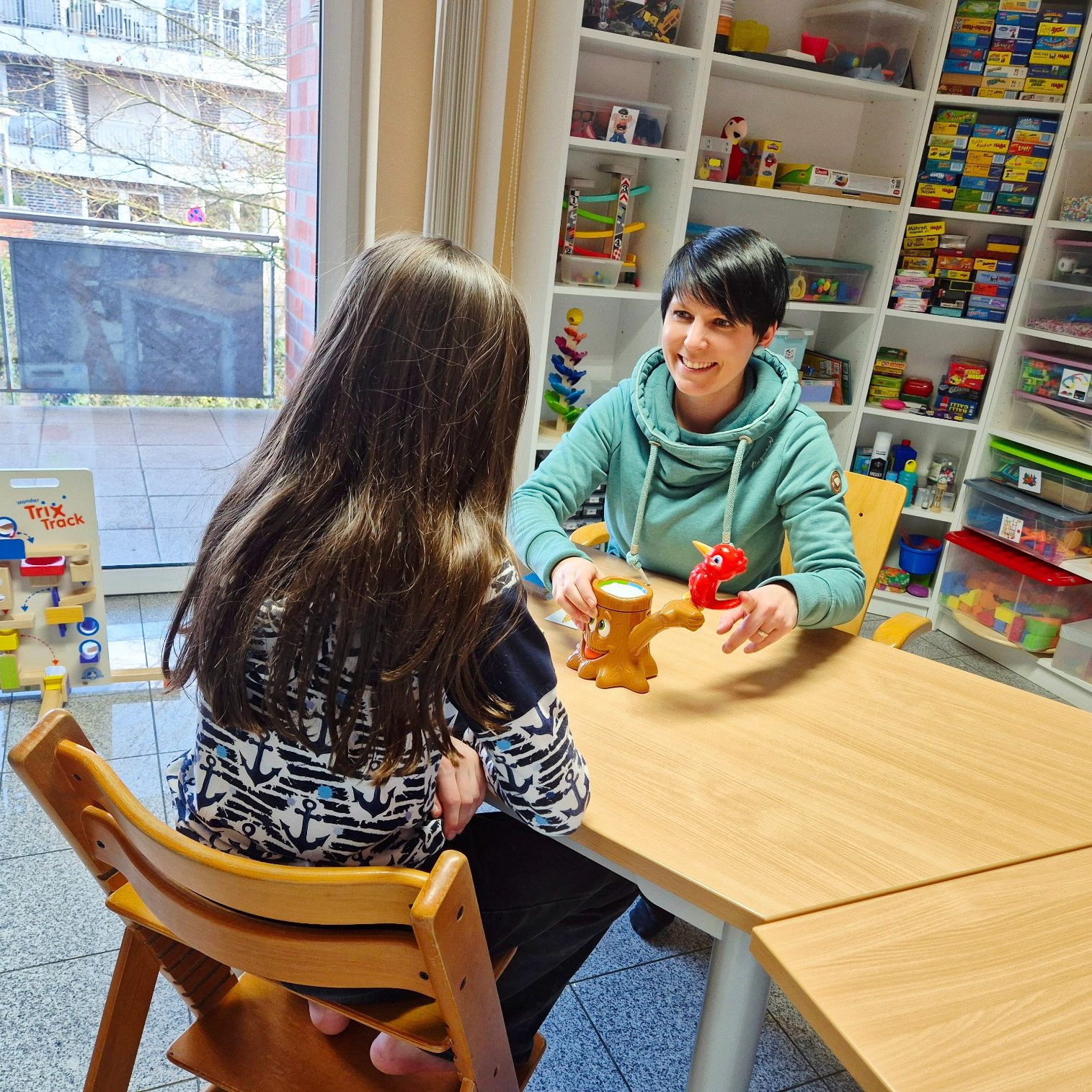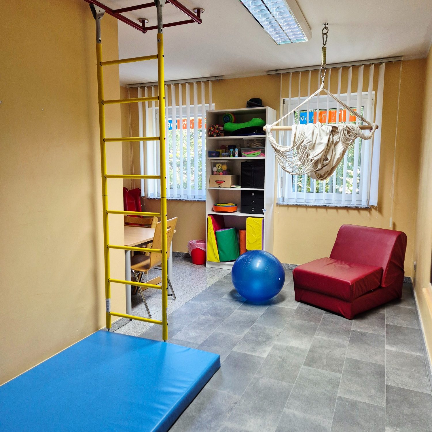 Unsere Therapieräume sind alle unterschiedlich gestaltet und je nach Therapieziel nutzbar - mal mit Möglichkeiten zum Freispiel, mal mit Raum für Bewegung. Alle schaffen eine angenehme Atmosphäre, in der Groß und Klein das Lernen gleichermaßen Spaß macht.